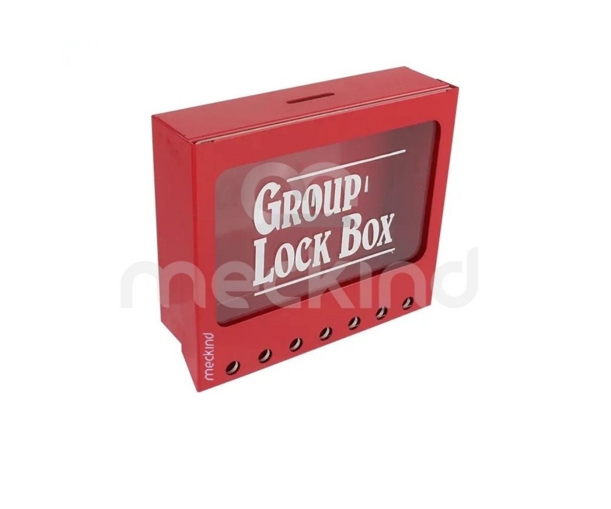 Scatole di blocco di gruppo realizzata in acciaio verniciato a polvere Dispone di 7 fori per lucchetti, che permettono a più operatori di bloccare la cassetta contemporaneamente e di depositare le chiavi in modo ordinato e sicuro. Questo garantisce la protezione del personale impegnato in attività di manutenzione e riparazione. La scatola è progettata per montaggio a parete.