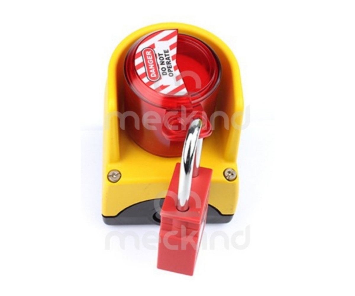 Blocco per pulsante di arresto di emergenza. Realizzato in policarbonato, con resistenza termica da -20°C a +120°C. Progettato appositamente per bloccare l’interruttore di arresto di emergenza, anche in presenza di protezioni o in spazi ristretti. Diametro foro : 28mm -Nr. fori per lucchetti: 2