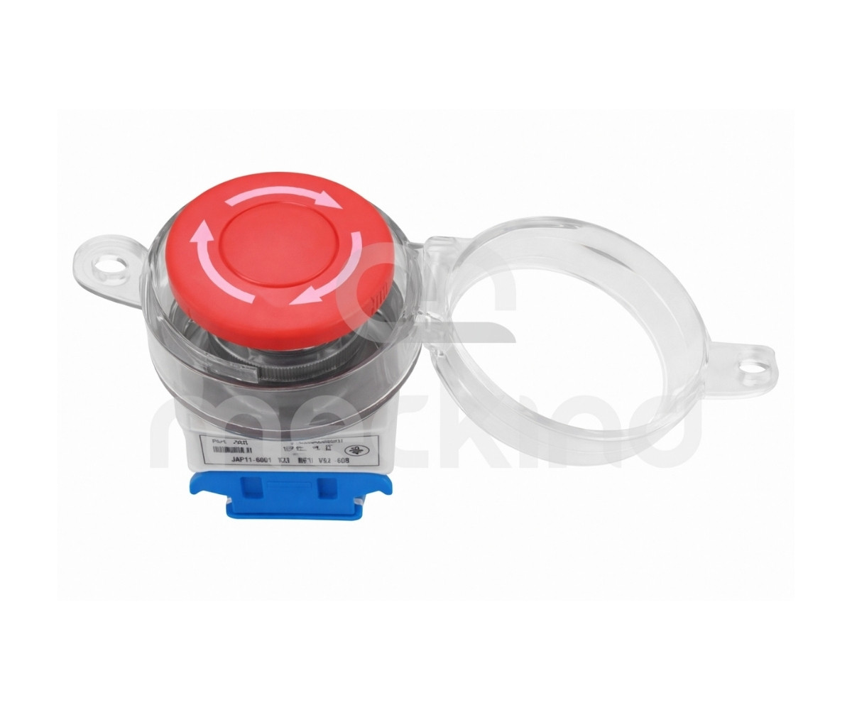 Blocco per pulsante di arresto di emergenza Realizzato in robusto policarbonato trasparente, questo dispositivo si installa facilmente sul pulsante di arresto di emergenza, tramite pressione o avvitamento. Il coperchio impedisce utilizzi involontari da parte degli operatori e garantisce un blocco affidabile e duraturo. È adatto per pulsanti con foro di diametro 22 e 30 mm.