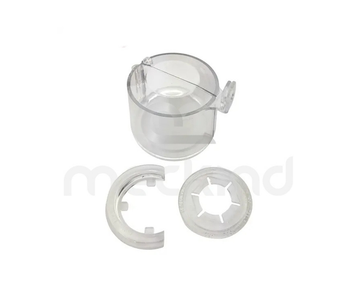 Blocco per pulsante di arresto di emergenza Realizzato in resistente policarbonato trasparente, questo dispositivo impedisce l’accesso al pulsante o a qualsiasi comando sottostante, garantendo una protezione efficace contro azionamenti non autorizzati. La base retrofit, sagomata a ferro di cavallo, permette l’installazione anche su targhette rialzate o in posizione decentrata, ed è progettata per adattarsi alle manopole degli interruttori rotativi. Il prodotto può ospitare pulsanti fino a 50 mm di diametro e 45 mm di altezza, ed è compatibile con interruttori con foro da 22 e 30,5 mm.