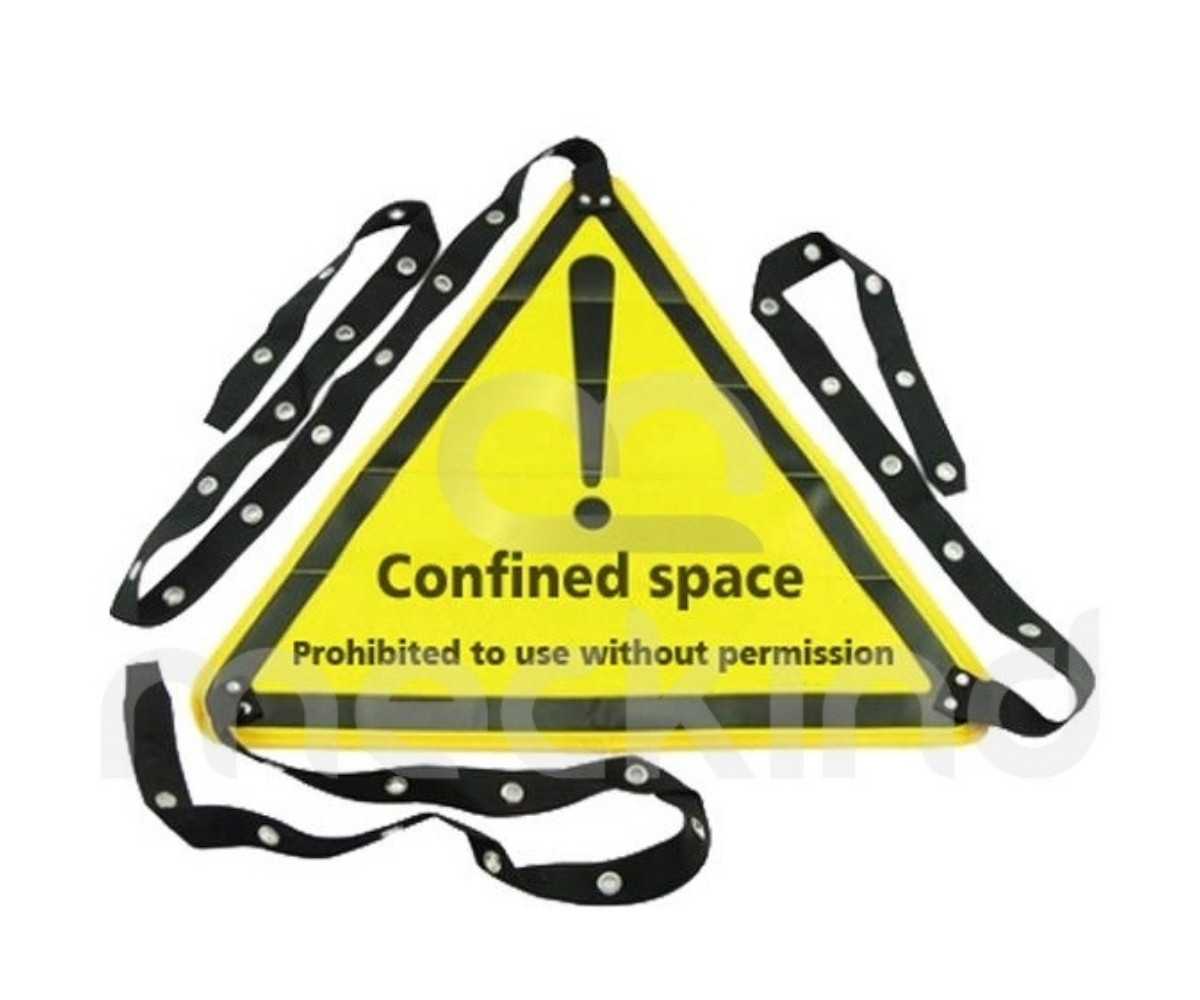 Segnale di blocco per botole Il segnale di blocco per botole è realizzata in tessuto poliestere resistente all’usura, leggero e facile da trasportare. Grazie al cavo di blocco da 5 metri, permette di mettere in sicurezza diversi tipi di aperture d’accesso. La superficie può riportare un segnale di pericolo personalizzabile in base alle esigenze operative. La versione standard ha dimensioni 485 × 420 mm che sono personalizzabili i n base alle esigenze del Cliente.