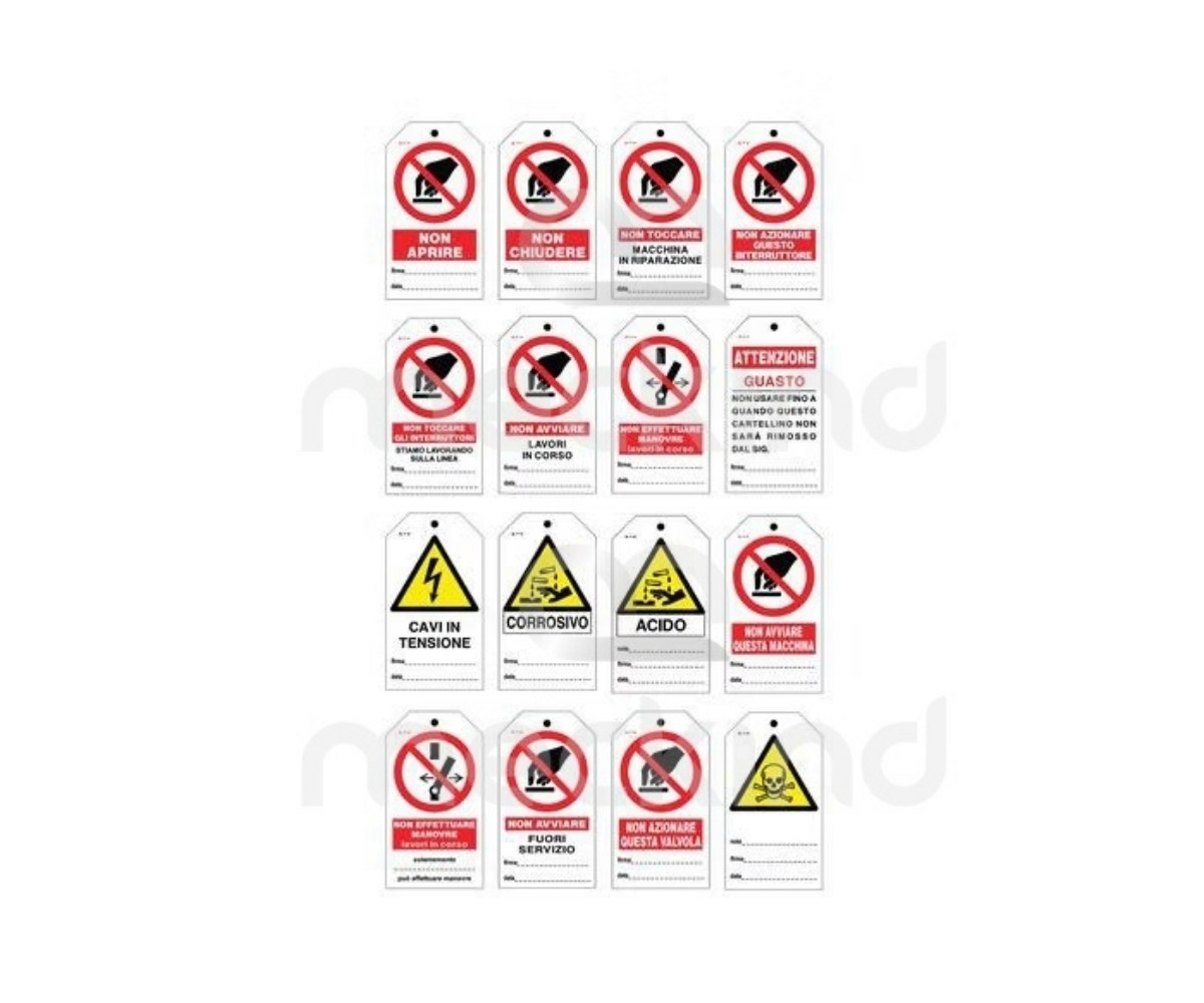 Realizzata in materiale PVC. La targhetta indica chi ha applicato il dispositivo di blocco e chi è autorizzato a rimuoverlo o modificarlo. Può essere scritta con pennarello cancellabile per un utilizzo ripetuto. Possibilità di personalizzare :